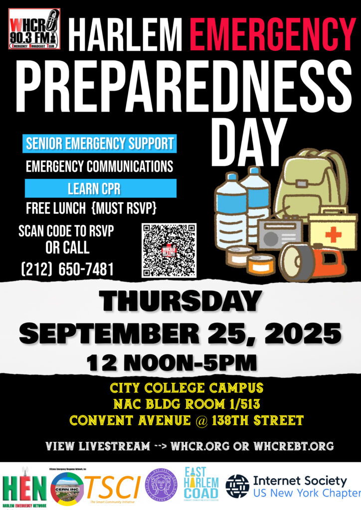 We co-sponsor Harlem Emergency Preparedness Day every September with the WHCR Emergency Broadcast Team